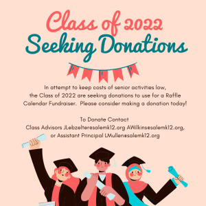 Dear SPS staff, In an attempt to keep costs low for senior activities, The class of 2022 is seeking donations for a calendar fundraiser. Cash would be used to purchase…