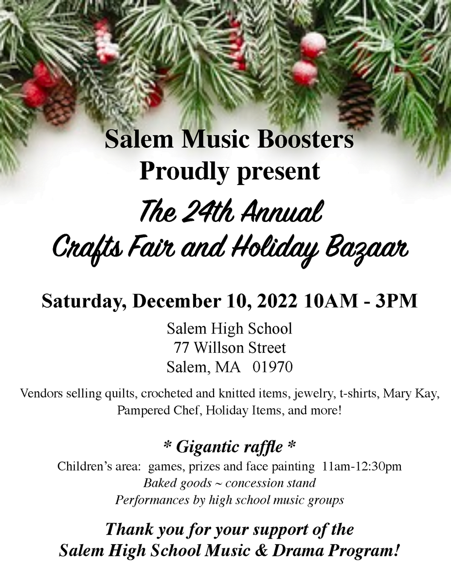 The MCJROTC cadets are hosting a Toys 4 Tots drive to provide gifts for Salem families in need this Christmas. There are donation boxes located by the SHS main entrance, as one at the SHS JROTC Command Post, and the main entrances at Collins Middle School and Witchcraft Heights Elementary School. Any new, unwrapped toys (for newborns up to age 12) would be greatly appreciated. Help get these kids in need something to open Christmas morning. Please get the word out so we can make this toy drive a success!